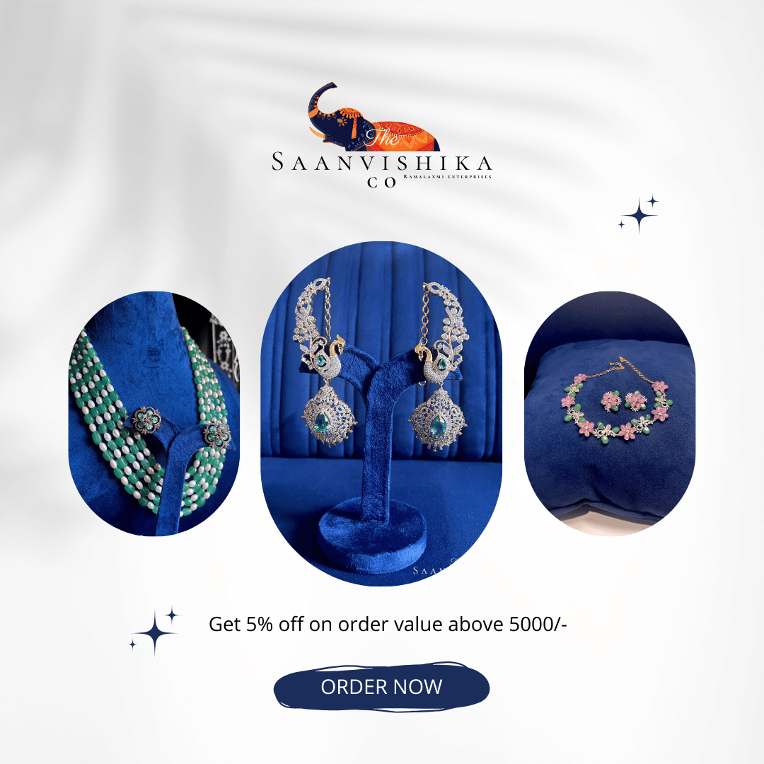 At The Saanvishika Co, we believe that elegance, tradition, and affordability can come together in perfect harmony. What began as a small passion project — carefully curating imitation jewellery for friends and family — soon grew into a full-fledged journey of creativity, culture, and community.