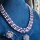 3 Line Beaded Mala (Violet and white) with Floral studs