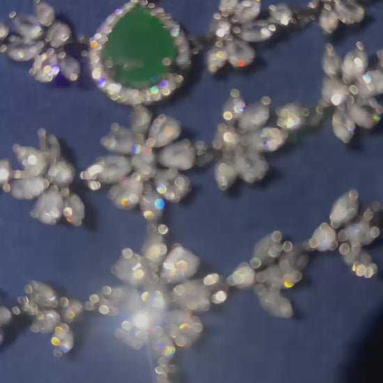 5 Layer Black Victorian Green Diamond Heavy Necklace with Earrings