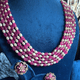 5 Line Beaded Mala (Pink and white) with Floral studs