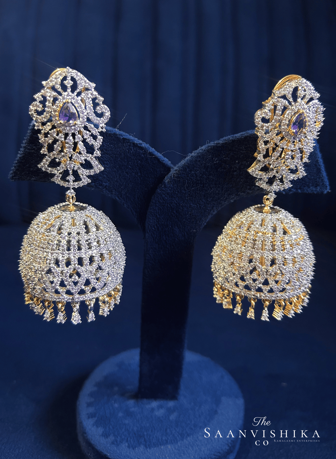 Detachable Pendant Grand Diamond Necklace with Earrings Violet (GJ Polish)