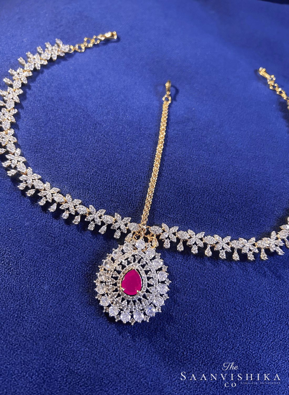 Droplet Tikka with Floral Chain (Red)