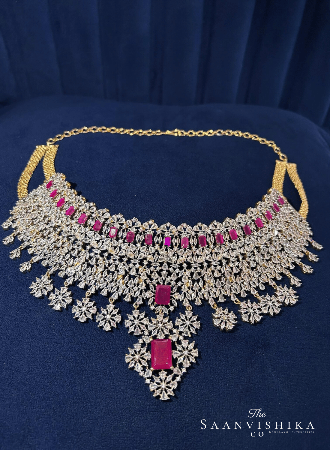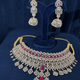 Grand Bridal Multi American Diamond Choker Set (Red)