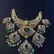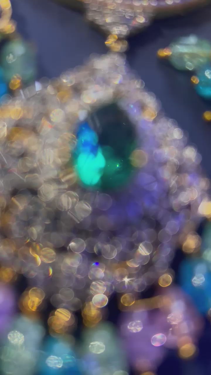 Grand Peacock Diamond Gemstone Necklace with Earrings