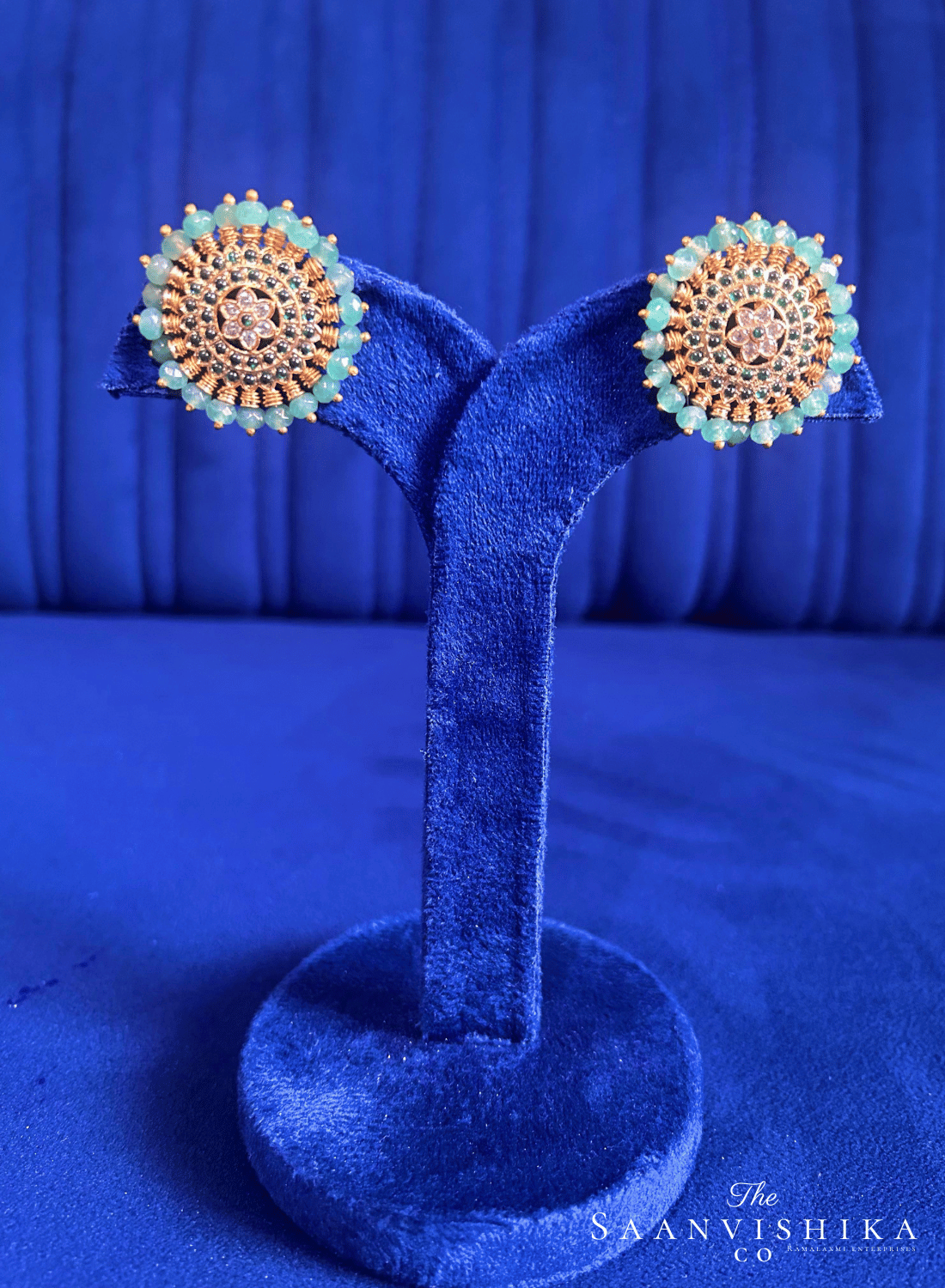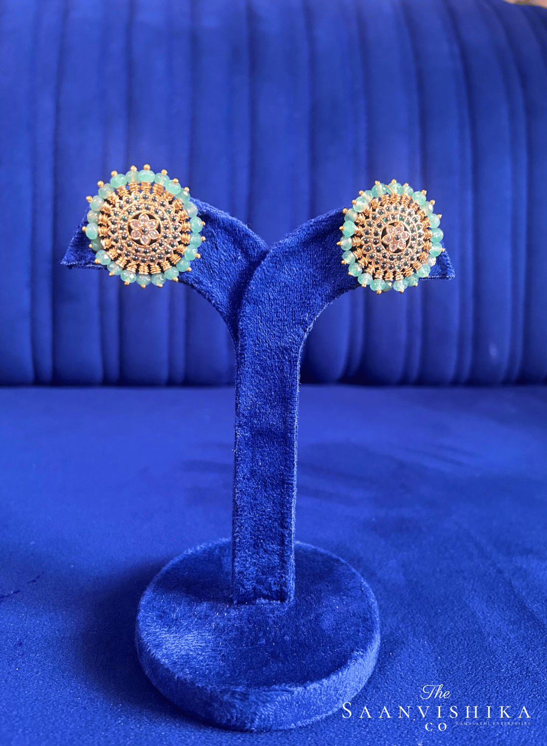 Green Beads Gold Stud Earrings