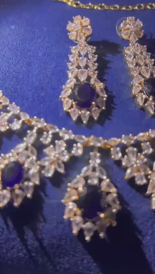 Hexagonal Gem Diamond Necklace with Earrings Black with Earrings