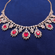 Hexagonal Gem Diamond Necklace with Earrings Red with Earrings