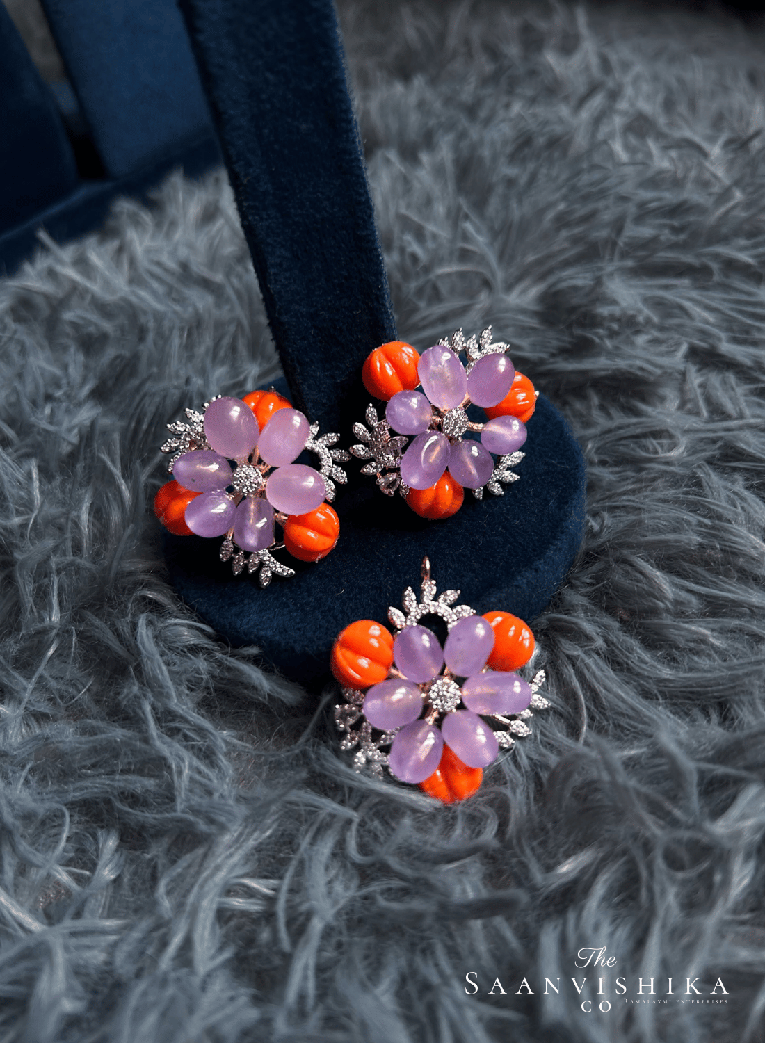 Jaipur Natural Beads Pendant set with Invisible Chain (Violet and Orange)