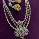 Jhumki Flower Pendant Grand Diamond Necklace with Earrings Green(Clear Stone)