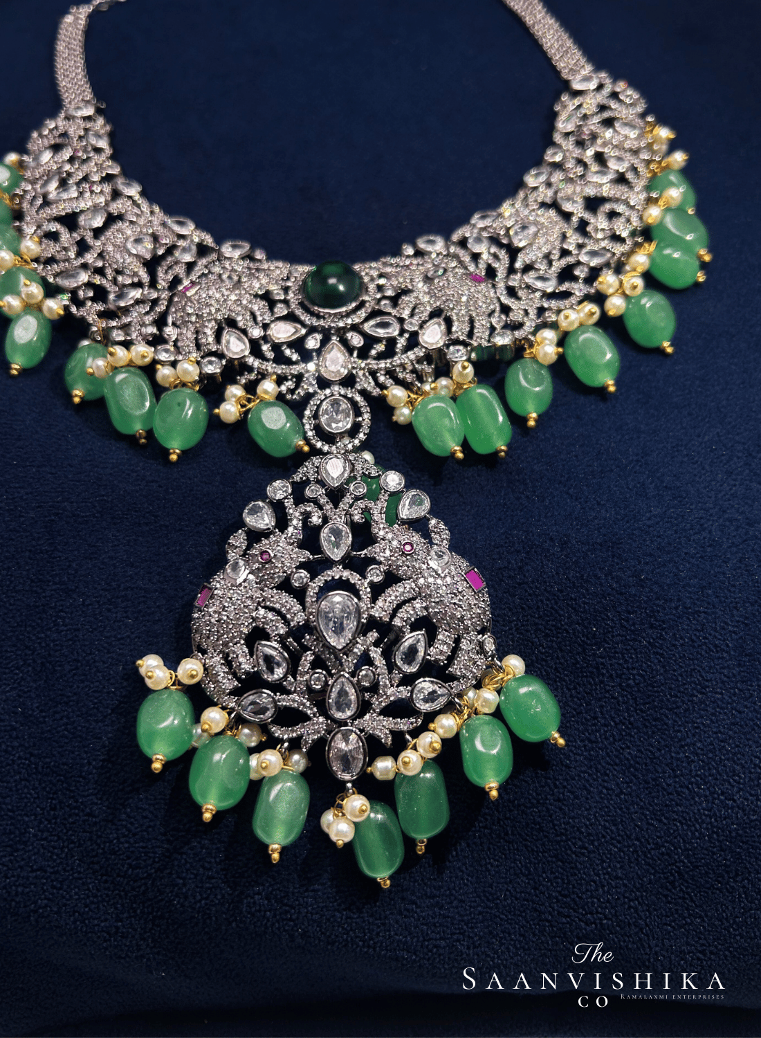 Royal victorian elephant detachable necklace with Green Beads (Black Victorian)