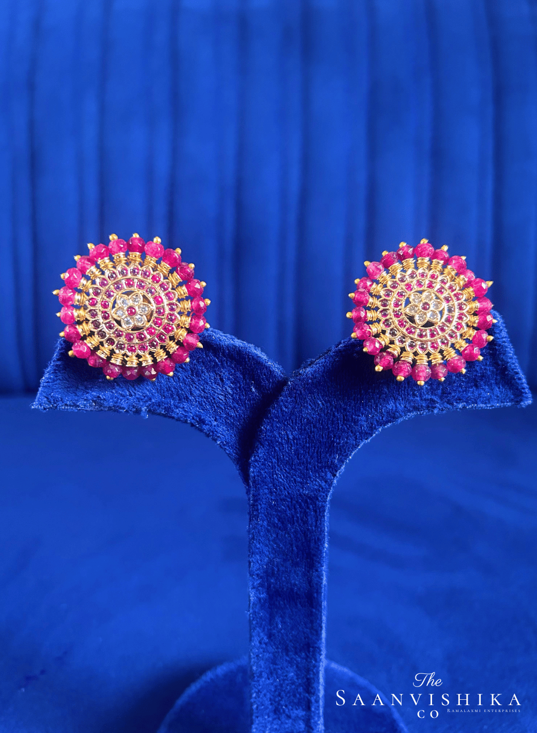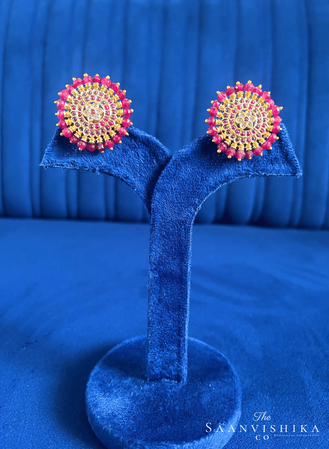 Ruby Beads Gold Stud Earrings