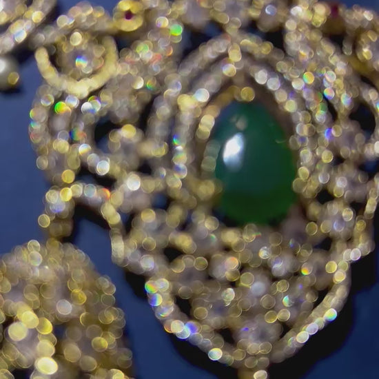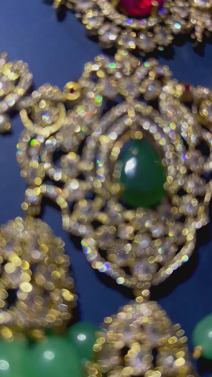Triple Gemstone Green Beads Diamond Necklace Multi Color