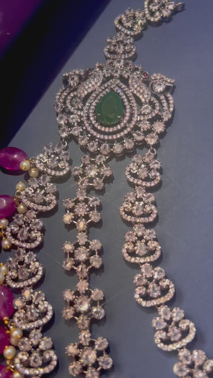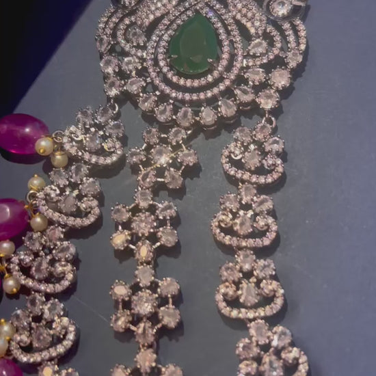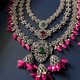 Triple Gemstone Pink Beads Diamond Necklace Multi Color