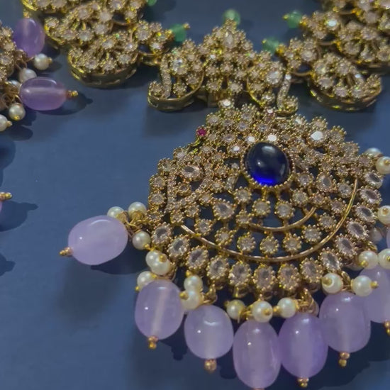 Victorian Beads Haram with Earrings Purple