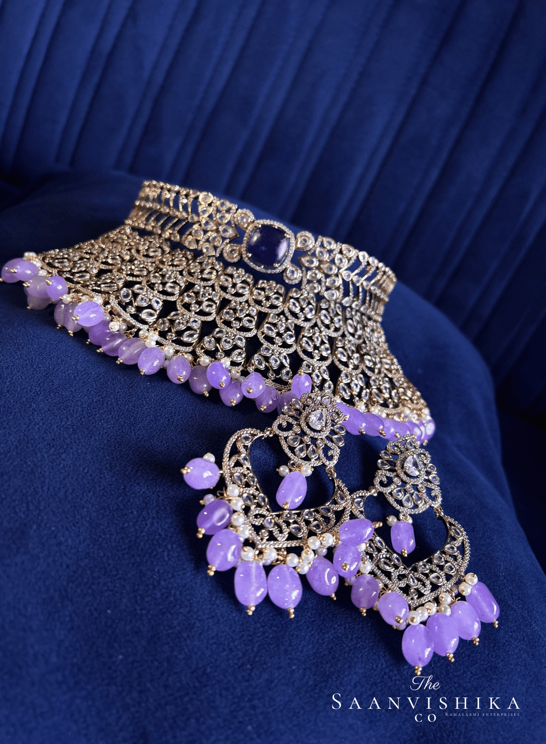 Victorian CZ Diamond Choker with Chandbali (Violet)