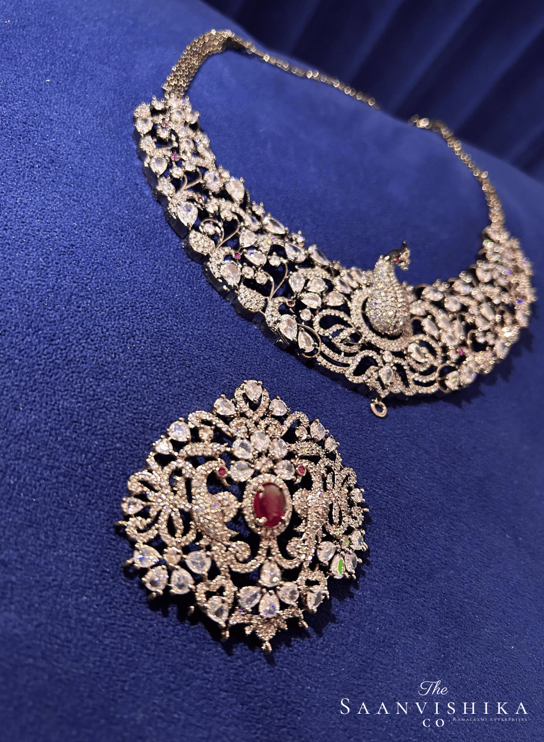 Victorian Peacock Necklace Set with Detachable Pendant (Red)